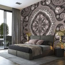Abstract, vlies fotobehang van een prachtig mozaïek patroon, weergegven in zwart-wit.