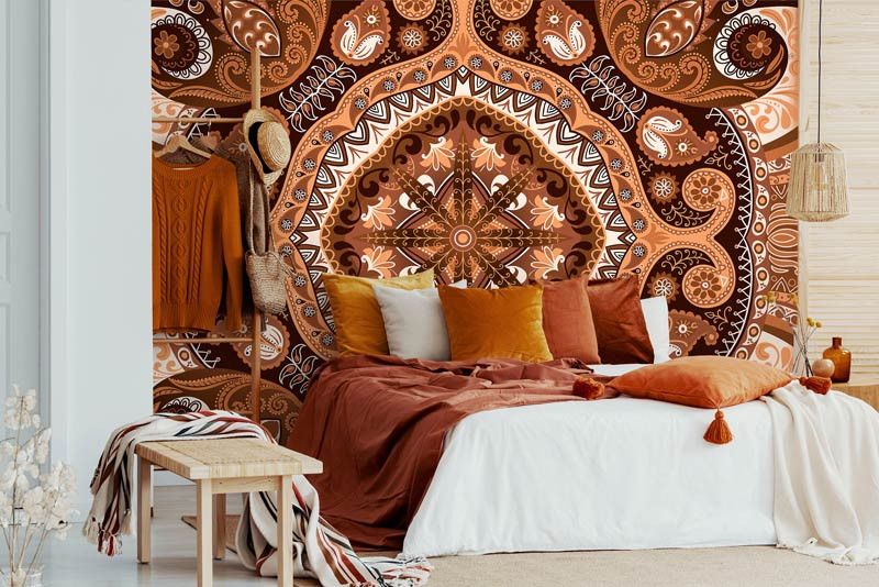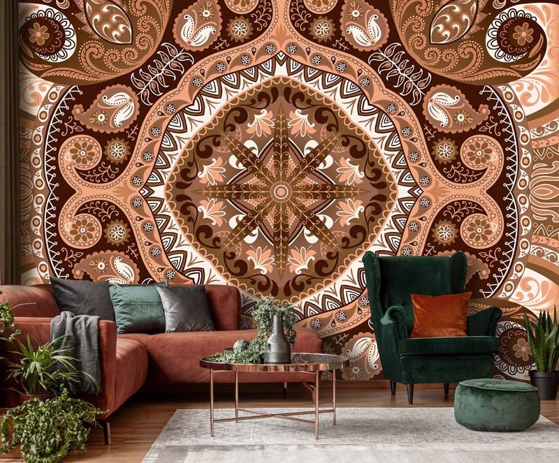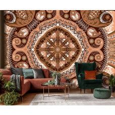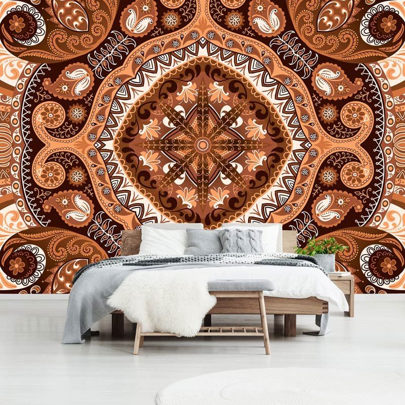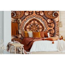 Abstract, vlies fotobehang van een prachtig mozaïek patroon, weergegven in het oranje.