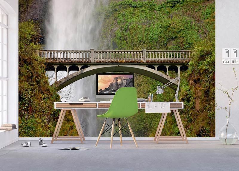 Breng de spectaculaire natuur van Oregon in huis met dit fotobehang van de Multnomah Falls. De kracht van de waterval en het omliggende groene landschap zorgen voor een frisse, natuurlijke uitstraling.