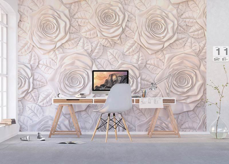 Creëer een romantische en frisse look met dit fotobehang van witte rozen. De delicate bloembladen en zachte witten geven een gevoel van zuiverheid en luxe.