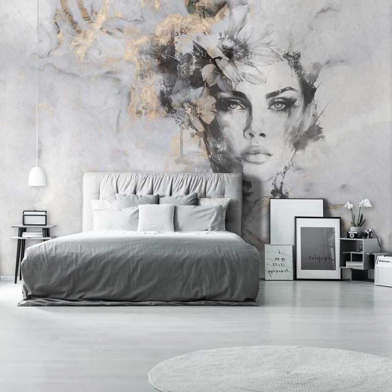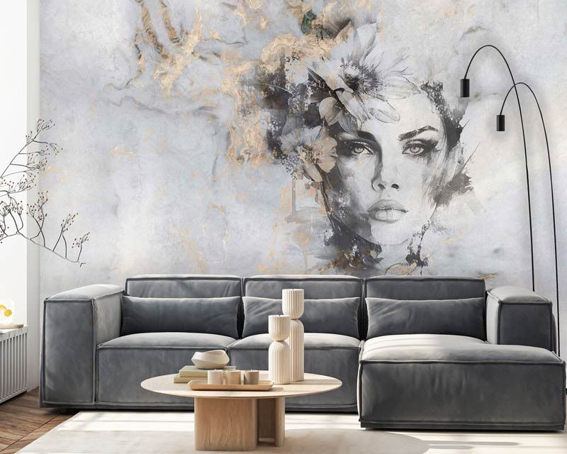 De hoogwaardige kwaliteit van het behang zorgt voor een haarscherpe weergave van de gouden accenten en zachte schaduwen. Dit fotobehang is eenvoudig op maat te bestellen en voegt een verfijnde luxe toe aan elke ruimte.