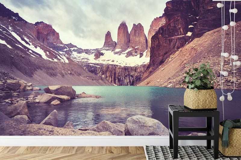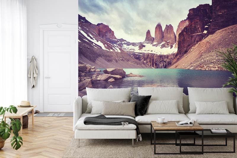 Laat je inspireren door de majestueuze pracht van Fotobehang Nationaal park Torres del Paine, Chili. Ervaar de betoverende landschappen van besneeuwde bergen, kristalheldere meren en uitgestrekte graslanden die dit UNESCO-werelderfgoed definiëren.