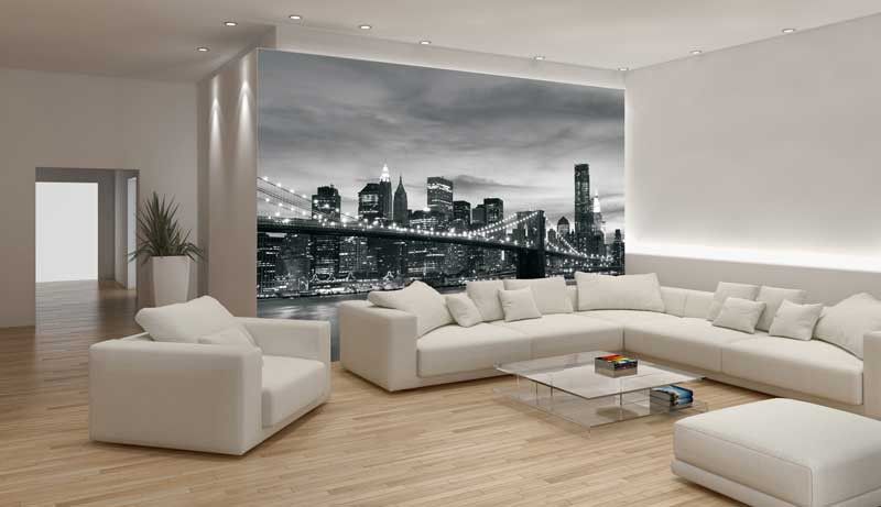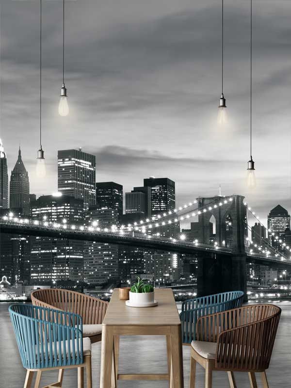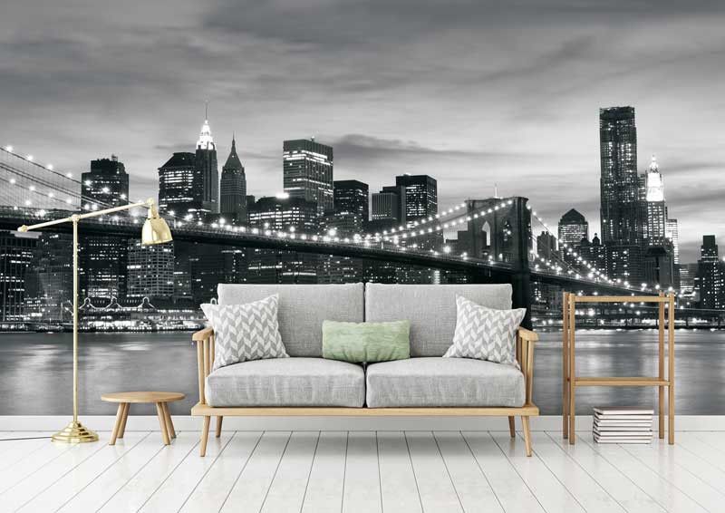 Zwart-wit, vlies fotobehang van de bekende Brooklyn Bridge in New York. Leuk voor in de slaapkamer, woonkamer, hal, kantoor of iedere andere ruimte.