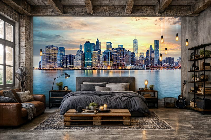 Dit design komt perfect tot zijn recht in de woonkamer, slaapkamer of kantoor en geeft iedere ruimte een moderne en stedelijke sfeer. De combinatie van architectuur, licht en water maakt het fotobehang veelzijdig en geschikt voor zowel strakke als industriële interieurs.