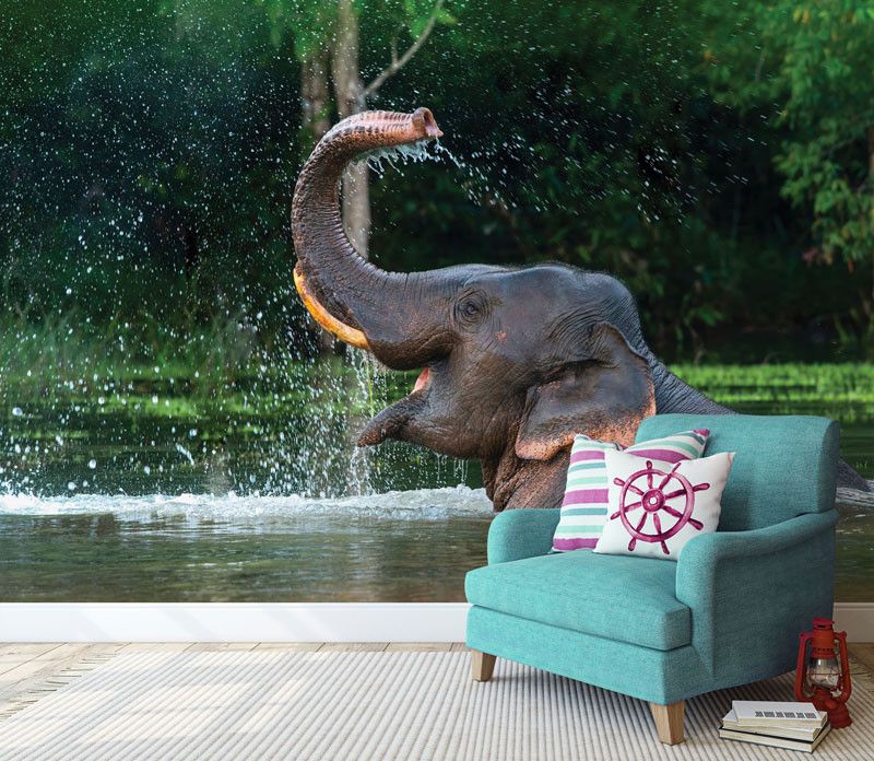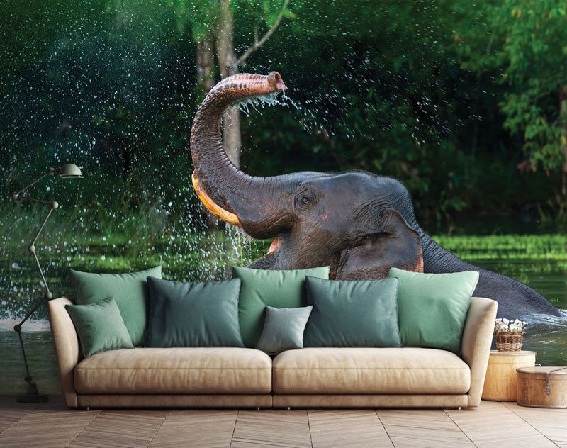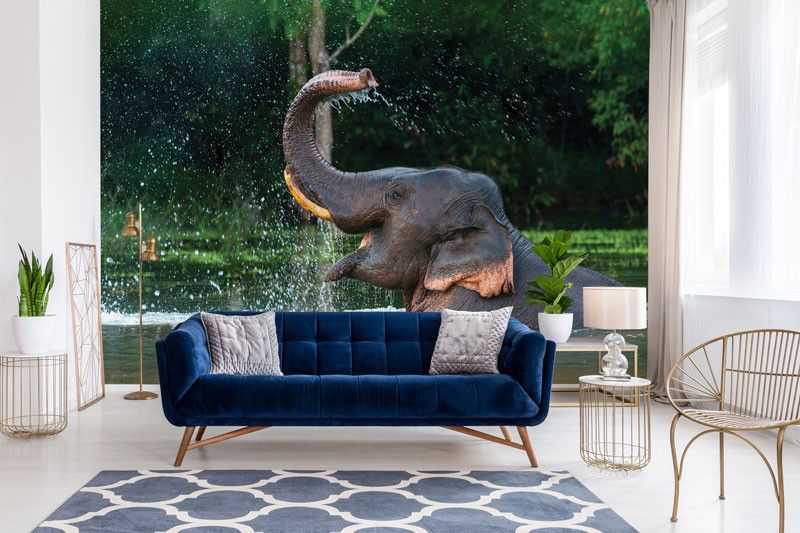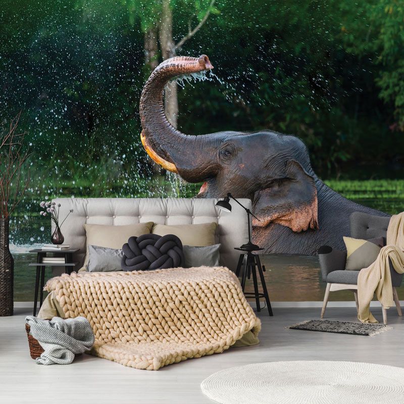 Dit fotobehang is eenvoudig op maat te bestellen door de gewenste afmetingen in te voeren en het perfecte deel van de afbeelding te selecteren. Dankzij de haarscherpe details en realistische kleuren komt de olifant in het water volledig tot zijn recht. Of je nu een speelse en natuurlijke sfeer wilt creëren in de woonkamer, slaapkamer of kinderkamer, dit fotobehang voegt een uniek element toe aan elke ruimte.