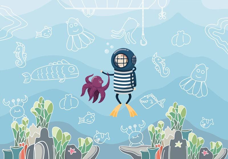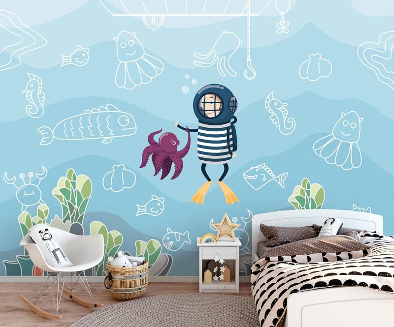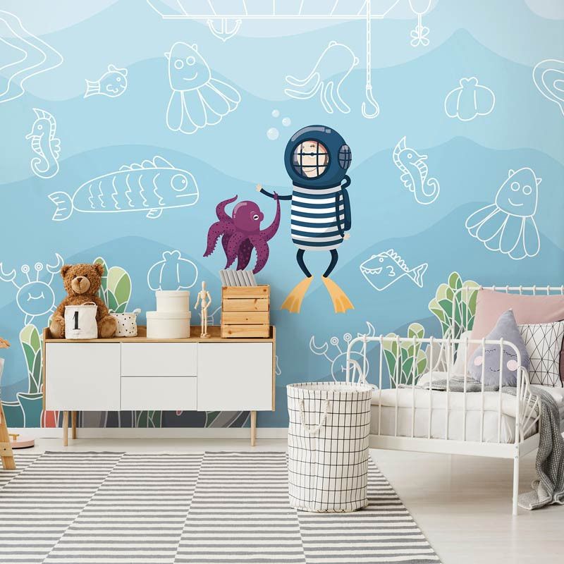 Het fotobehang van de onderwaterwereld is een echte eyecatcher in iedere babykamer of kinderkamer.