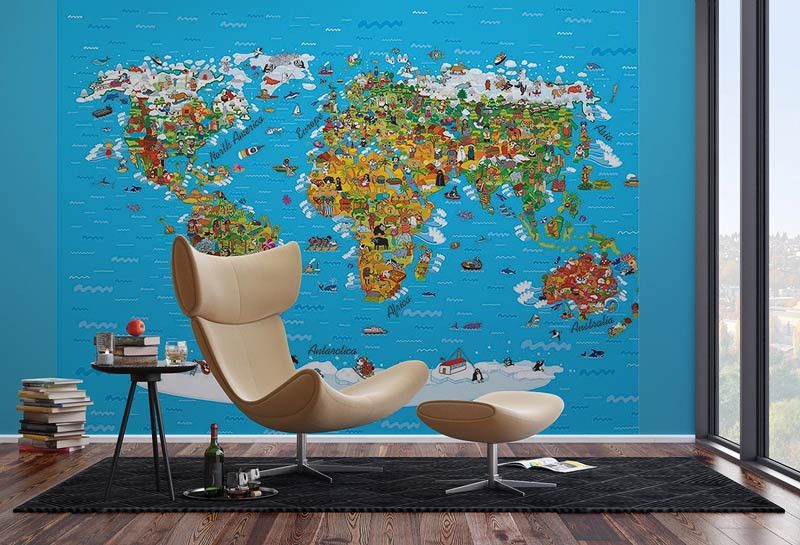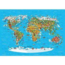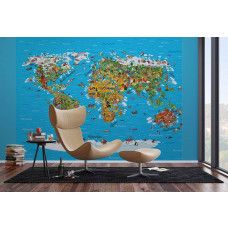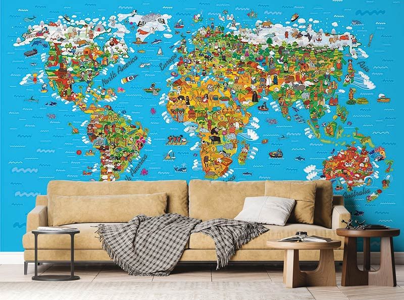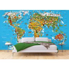 Ontdek de wereld op een speelse manier met dit fotobehang speciaal voor de kinderkamer. De wereldkaart is vormgegeven in vrolijke en zachte kleuren, perfect om kinderen nieuwsgierig te maken naar de wereld om hen heen. De kindvriendelijke details maken het behang zowel leerzaam als decoratief.
