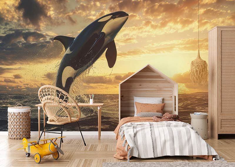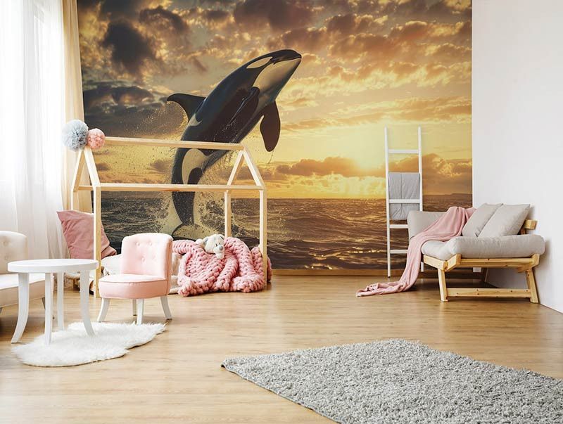 Laat je meevoeren naar de oceaan en geniet elke dag van dit prachtige moment met het Fotobehang Orka, een speelse en rustgevende toevoeging aan iedere kamer.