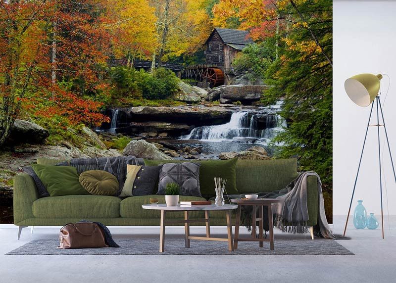 Breng de rust van het platteland in huis met het fotobehang Oude Graanmolen in Babcock State Park. De warme aardetinten en de indrukwekkende detaillering van de molen en de omringende natuur zorgen voor een authentieke uitstraling.