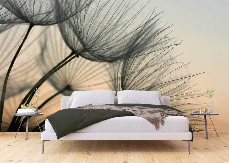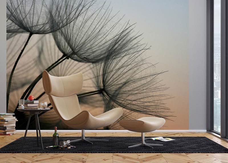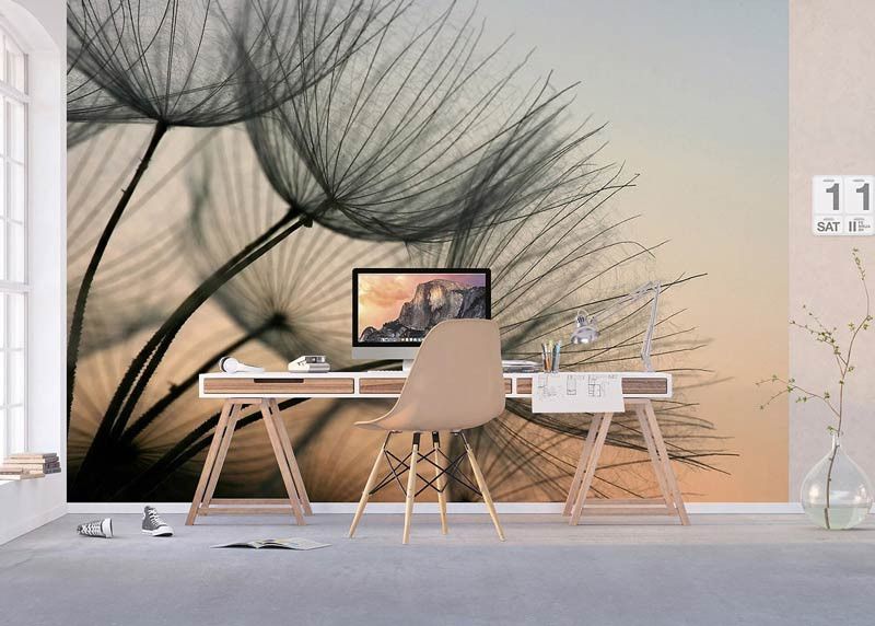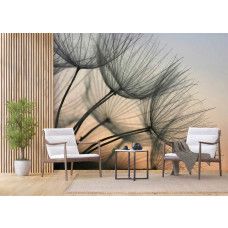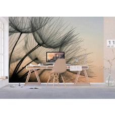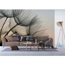 Ervaar de delicate schoonheid van een paardenbloem die zacht verlicht wordt door het avondlicht met dit fotobehang. De subtiele kleuren en de fijne details van de zaadpluisjes brengen een kalme en serene sfeer.