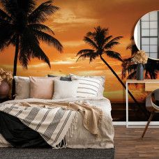 Vlies fotobehang van een paar prachtige palmbomen in het licht van de zonsondergang.