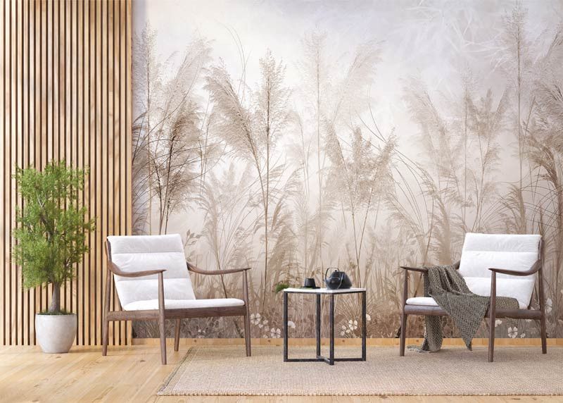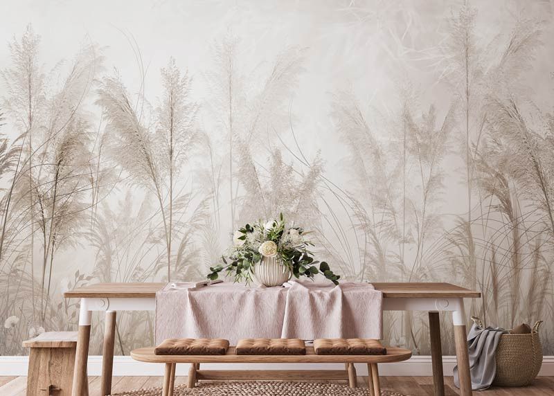 Voeg een natuurlijke en zachte uitstraling toe aan je interieur met het fotobehang Pampasgras Tuin. De sierlijke pluimen van het pampasgras in warme tinten zorgen voor een rustige, bohemien sfeer die perfect past bij een modern interieur.