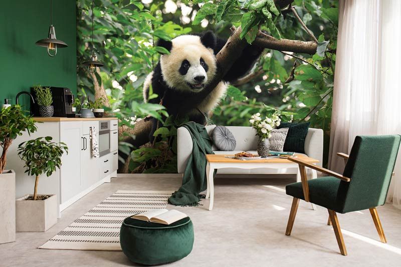 Vlies fotobehang van een prachtige reuzenpanda, hoog in de bomen van de jungle.