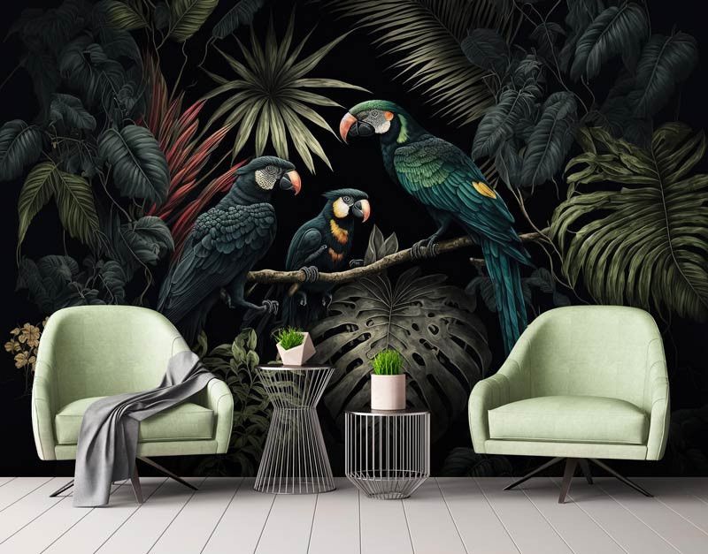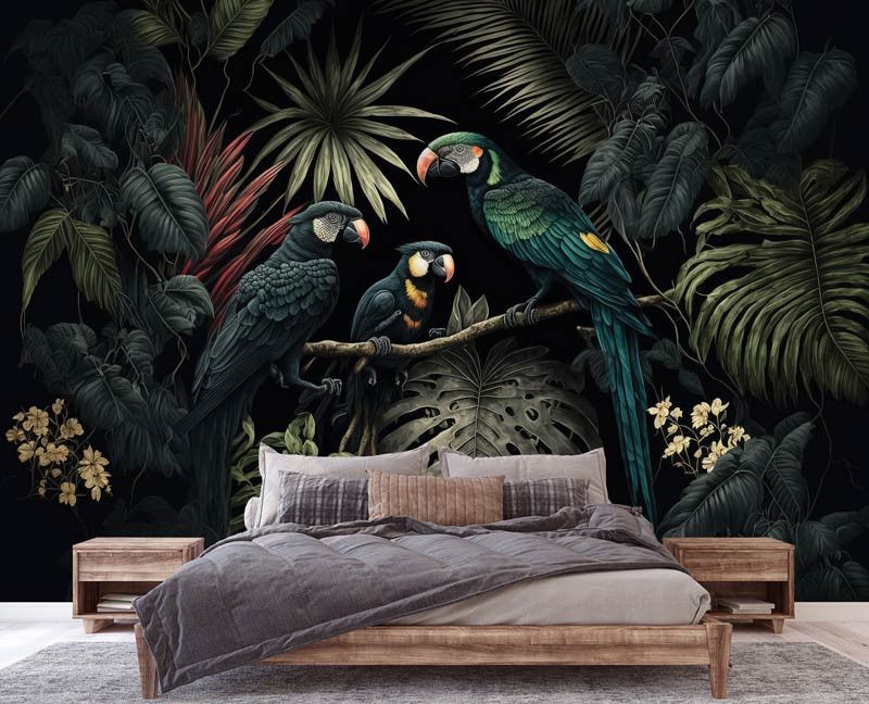 Haal de tropische sferen bij u in huis met dit tropische jungle fotobehang met papegaaien. De schitterende papegaaien in combinatie met de weelderige, groene, jungle bladeren zorgen voor een tropische oase in iedere ruimte.