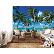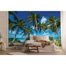Creëer een tropisch paradijs in je interieur met ons Fotobehang Paradijselijke Palmbomen. Dit adembenemende fotobehang toont een weelderig landschap van palmbomen bij strand en zee, tegen een azuurblauwe hemel, waardoor een gevoel van ontspanning en sereniteit ontstaat in elke kamer. Perfect voor liefhebbers van exotische bestemmingen en zonnige decors, ideaal voor de woonkamer, slaapkamer of iedere andere ruimte.