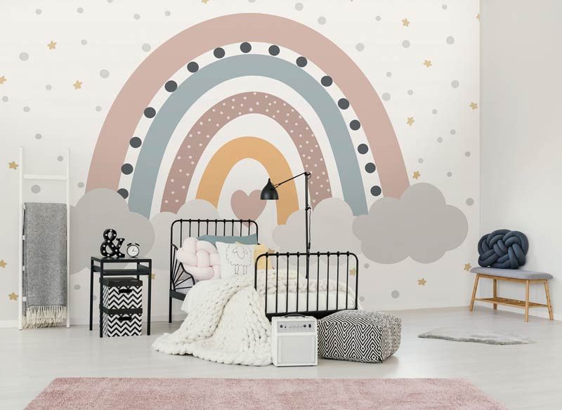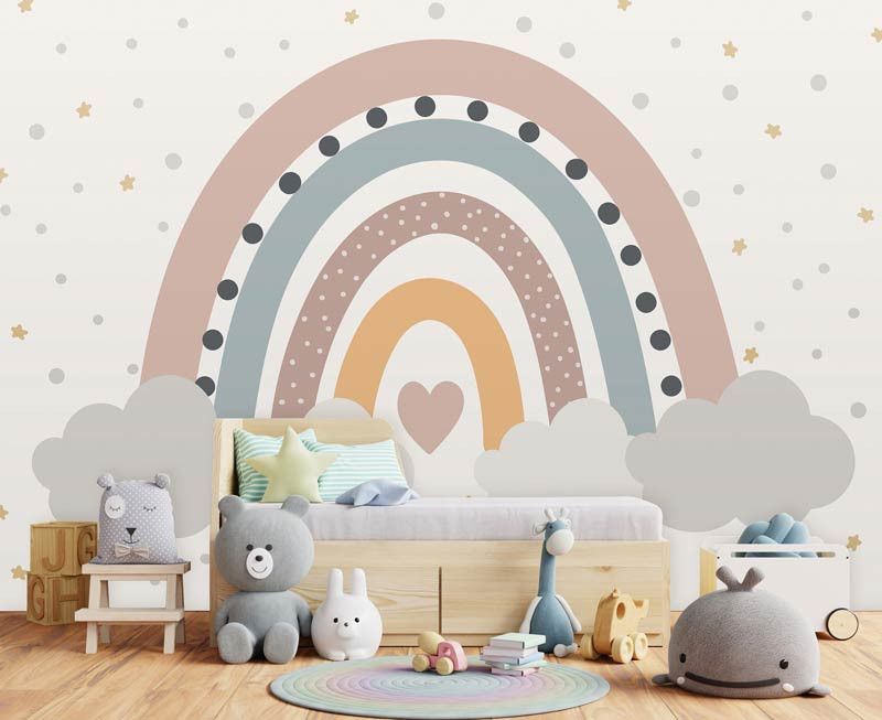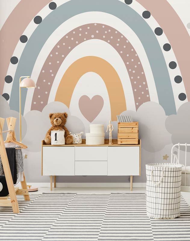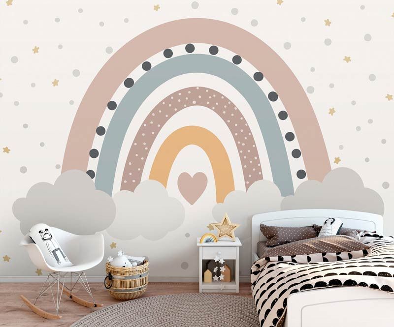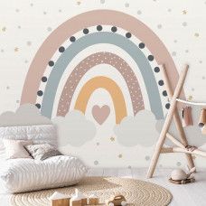 Dit fotobehang is eenvoudig op maat te bestellen en voegt een unieke sfeer toe aan kinderkamers of babykamers. Maak van de kamer een creatieve en ontspannen plek met deze prachtige regenboog.