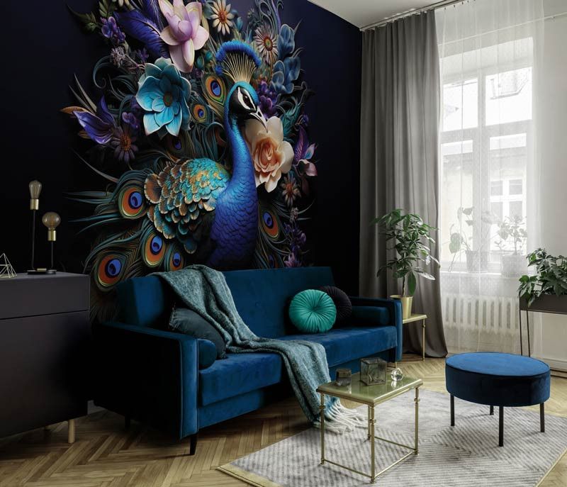 Ervaar de elegante pracht van een ons Fotobehang Pauw en Bloemenpracht. Dit schitterende fotobehang toont een majestueuze pauw te midden van weelderige bloemen, waardoor een gevoel van luxe en schoonheid ontstaat in elke kamer. Perfect voor liefhebbers van exotische dieren, bloemen en kleurrijke decoraties, ideaal voor de woonkamer, slaapkamer of kantoor.