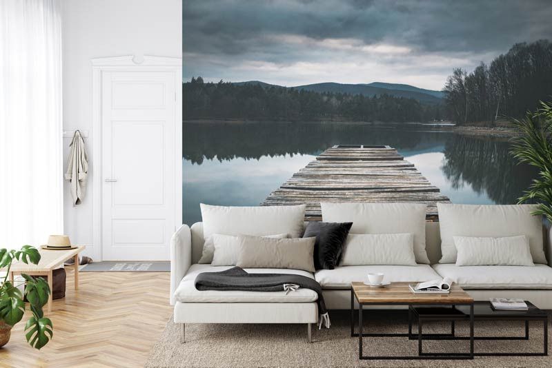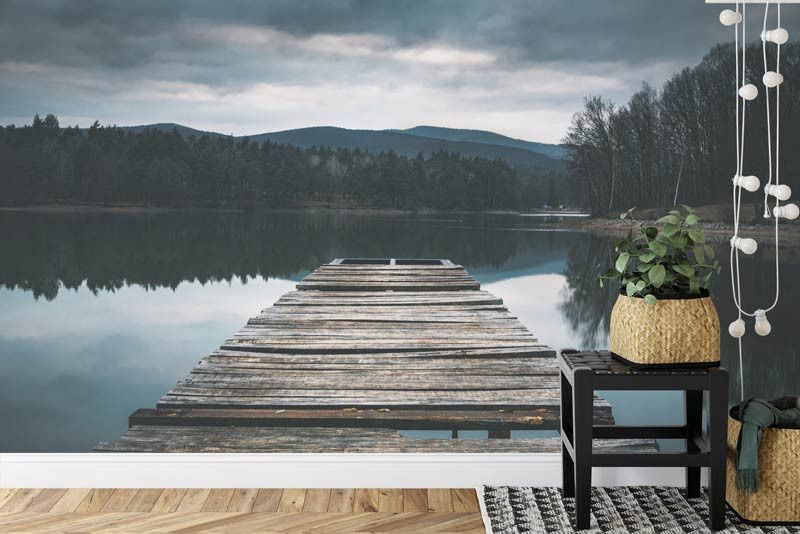 Ons fotobehang wordt met vakmanschap afgedrukt op hoogwaardig materiaal, waardoor elk detail van de pier tot leven komt. Bestel vandaag nog jouw fotobehang op maat en breng de rust van het meer naar jouw interieur.
