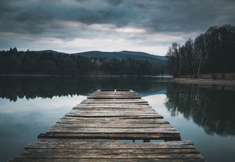Laat je meenemen naar een oase van rust en sereniteit met Fotobehang Pier op het Meer. Ervaar de kalme schoonheid van een sierlijke pier die zich uitstrekt over een spiegelglad meer, omgeven door een betoverend landschap van bomen en bergen. Laat je gedachten afdwalen terwijl je geniet van de tijdloze pracht van de natuur.