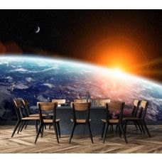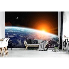 Dit fotobehang toont een adembenemend uitzicht op de planeet aarde vanuit de ruimte. Het biedt een unieke en fascinerende manier om de schoonheid van onze wereld te ervaren en kan een geweldige aanvulling zijn op elke ruimte in huis.