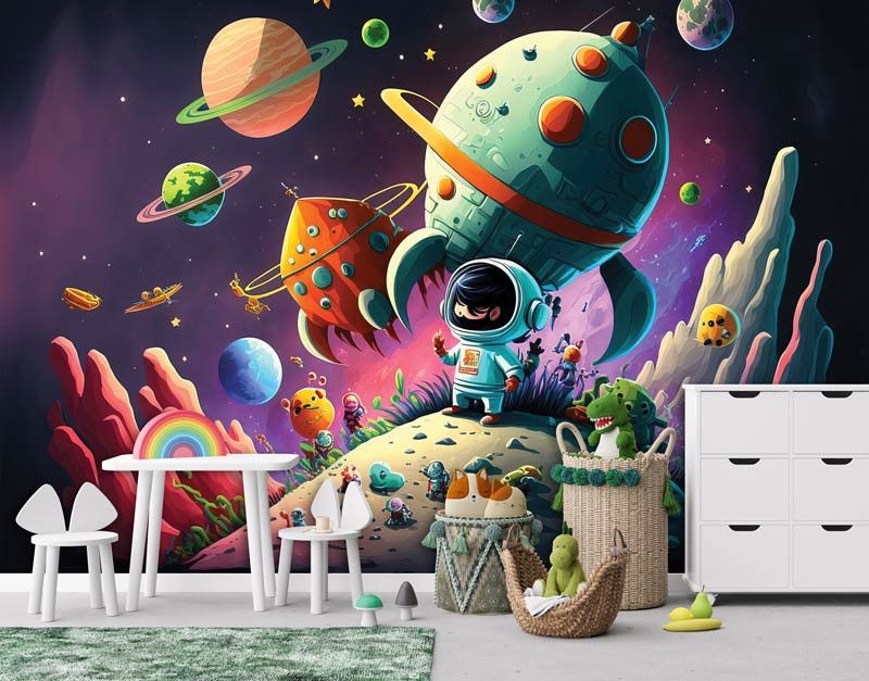 Verken de wonderen van het heelal vanuit je eigen huis met ons Fotobehang Planeten en Raketten in de Ruimte. Dit fascinerende fotobehang toont kleurrijke planeten en stoere raketten die door de eindeloze ruimte zweven, waardoor een gevoel van verwondering en avontuur ontstaat in elke kamer. Perfect voor liefhebbers van astronomie, ideaal voor de kinderkamer, speelkamer of studeerkamer.