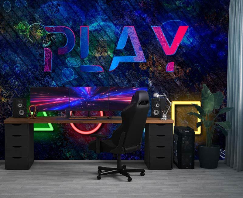 Breng je gamekamer tot leven met het energieke Fotobehang Play Game Symbols. Dit opvallende ontwerp combineert het woord “Play” in krachtige typografie met daaronder de iconische PlayStation-symbolen, fel verlicht in neon. De combinatie van een blauwe en zwarte achtergrond zorgt voor een modern, futuristisch effect dat perfect aansluit bij elke gamersomgeving.