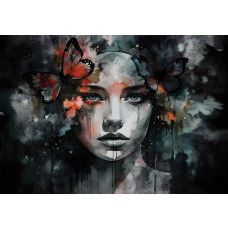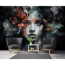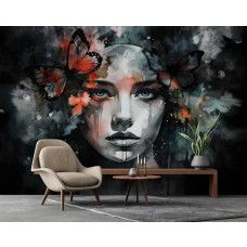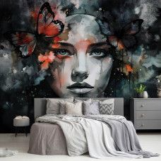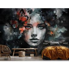 Creëer een sfeer van betovering in je woonkamer, slaapkamer of kantoor met ons Fotobehang Portret van Vrouwelijke Elegantie en Vlinderdromen. Laat je inspireren door de schoonheid van een vrouwelijk portret omringd door kleurrijke vlinders.