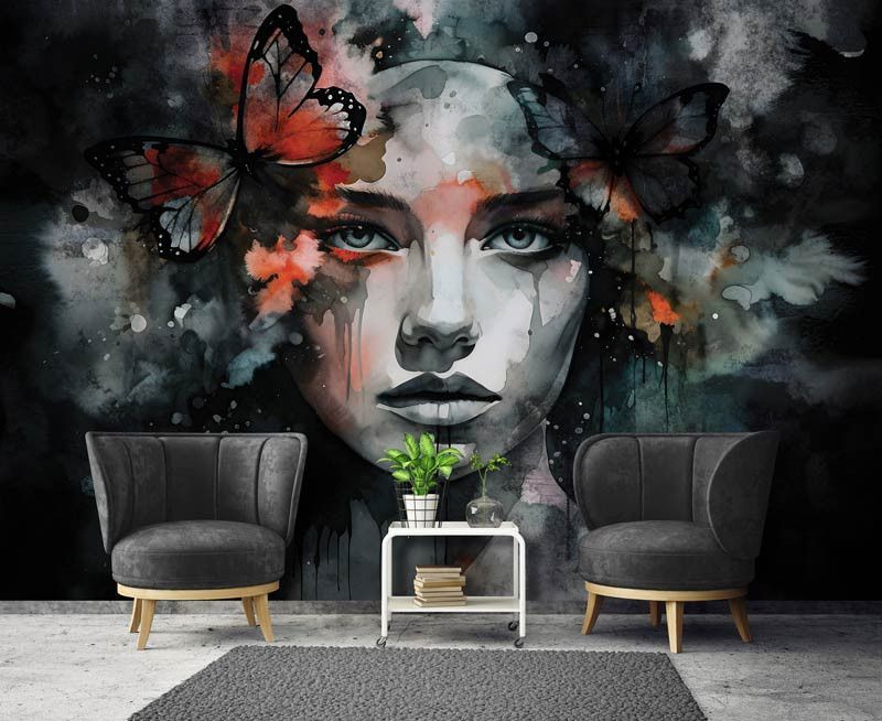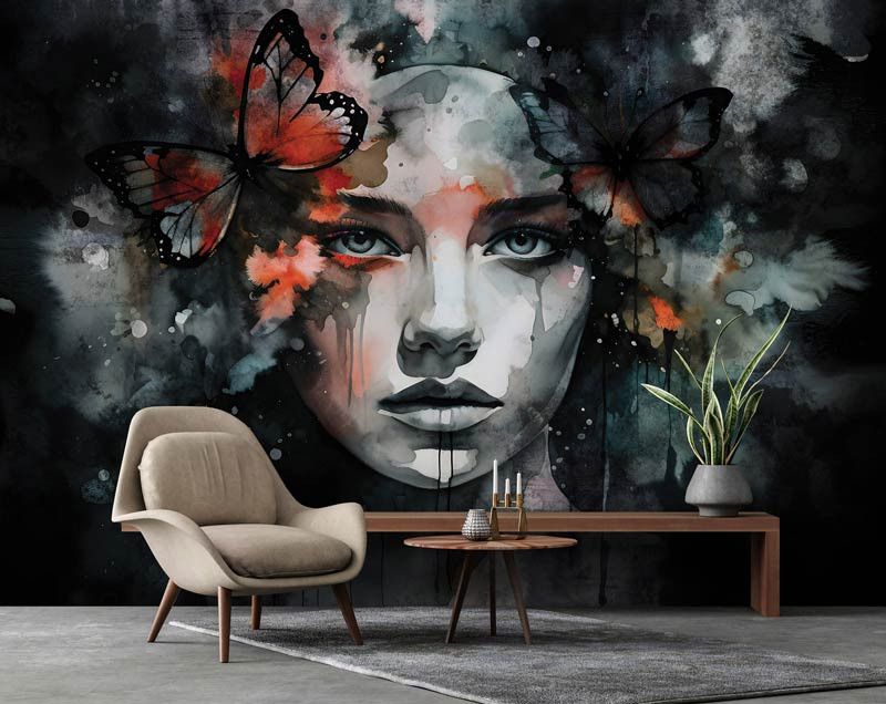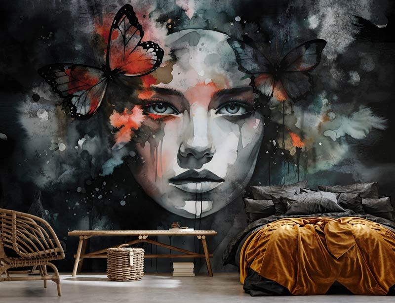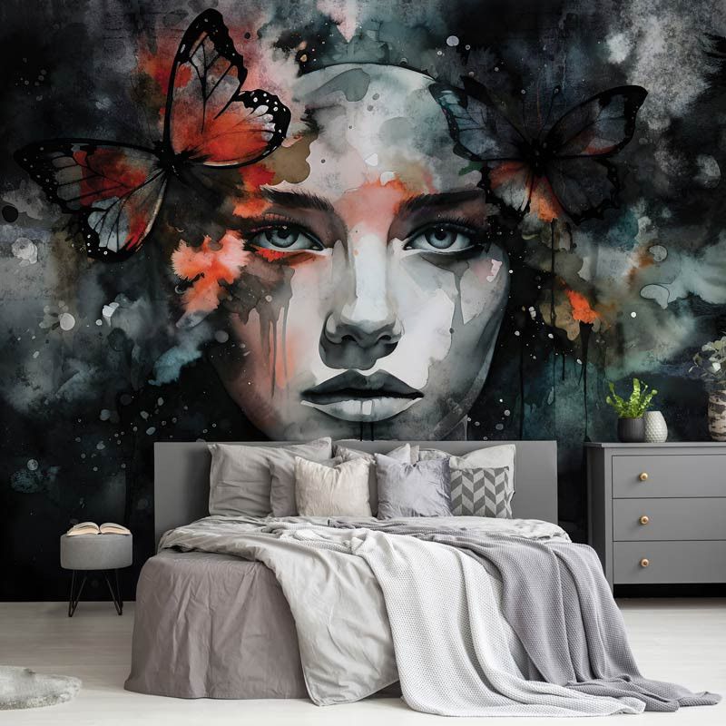 Fotobehang Portret van Vrouwelijke Elegantie en Vlinderdromen