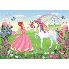 Het fotobehang van de Prinses met haar unicorn is een schitterende aanvulling op de kinderkamer van elk meisje.