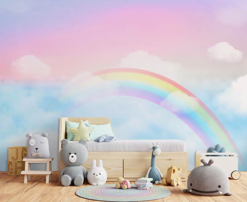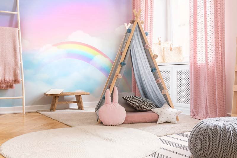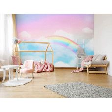 Breng magie en vreugde in de kinderkamer met het fotobehang Regenboogdroom. Dit prachtige behang toont een kleurrijke regenboog en zachte wolken, perfect om een dromerige en vrolijke sfeer te creëren.