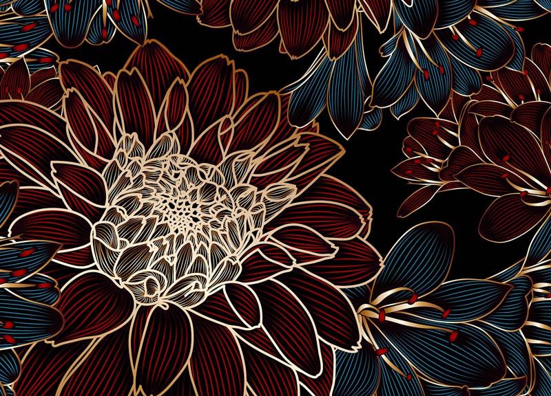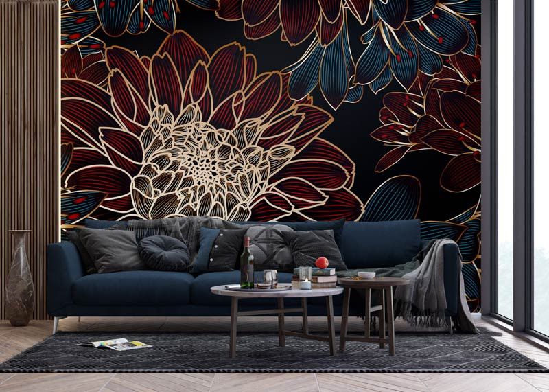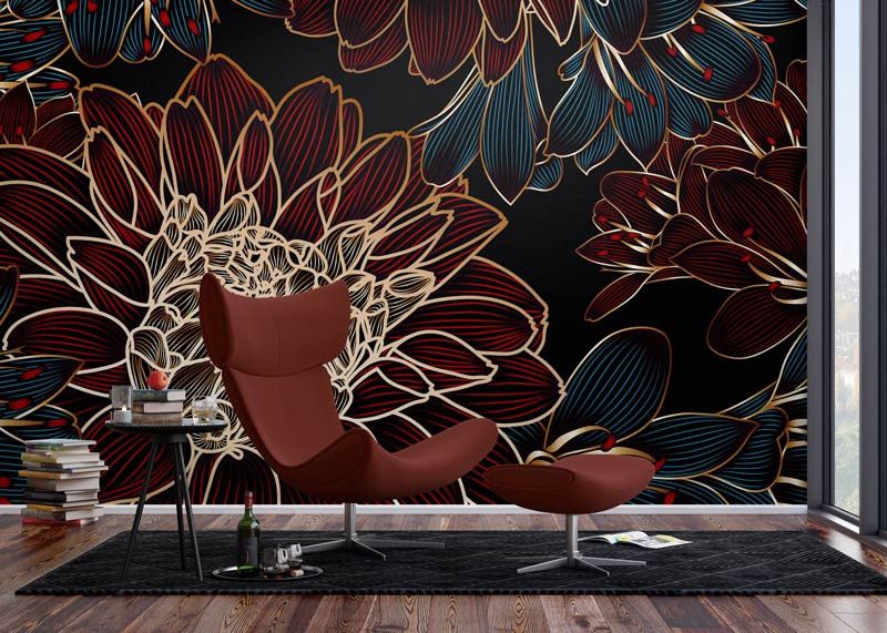 Geef je interieur een kunstzinnige en luxe uitstraling met het fotobehang Rijke Compositie. Dit ontwerp combineert diepe kleuren en subtiele gouden elementen voor een elegant en indrukwekkend effect. De gelaagdheid en dynamische vormen maken dit behang een echte eyecatcher.