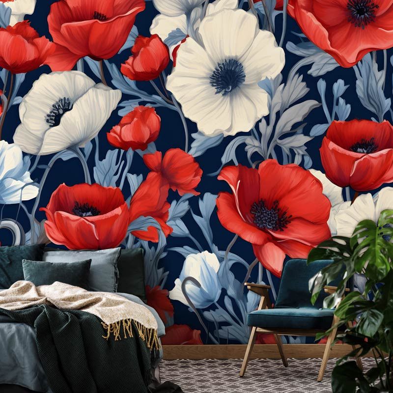 Transformeer je interieur met ons Fotobehang Rode en Witte Bloemen en geniet elke dag van de levendige kleuren en dynamiek van de natuur.