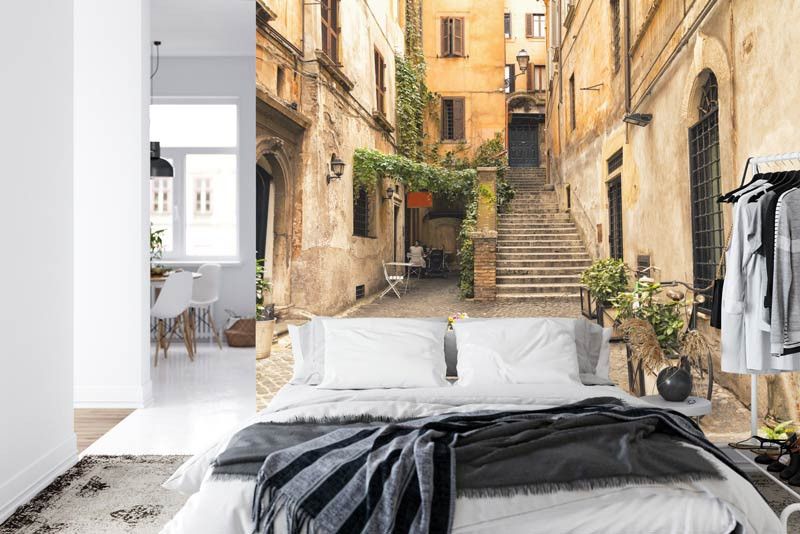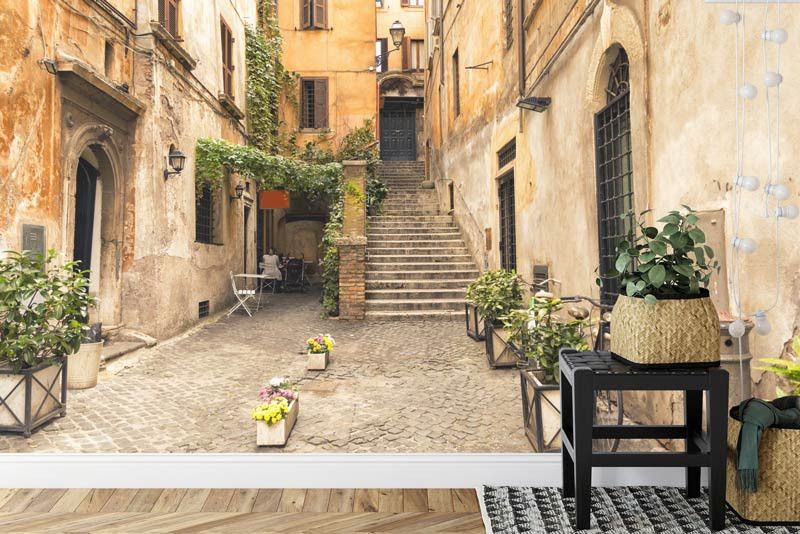 Ontdek de romantiek van Rome met ons fotobehang van een romantische steeg. Breng de charme van de Italiaanse hoofdstad naar jouw interieur en creëer een sfeer van liefde en passie.