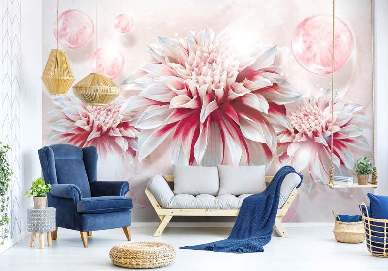 Vlies fotobehang van prachtige, roze bloemen.