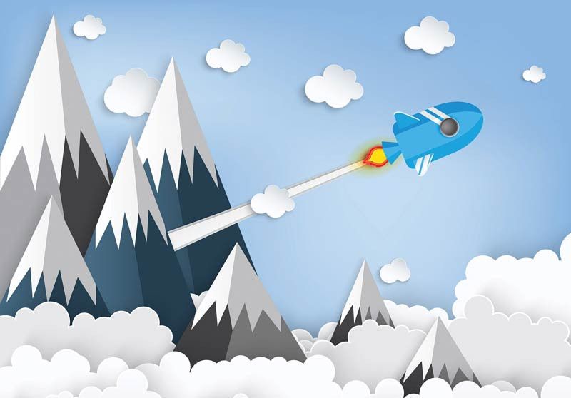Fotobehang van een ruimteschip, op weg naar de ruimte.