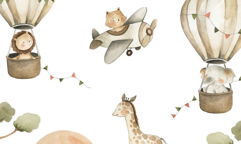 Fotobehang Safari Droom is eenvoudig op maat te bestellen en verkrijgbaar op vliesbehang, vinylbehang en Airtex naadloos behang. Creëer een vrolijke safari-droomwereld en laat je kinderen elke dag op avontuur gaan!