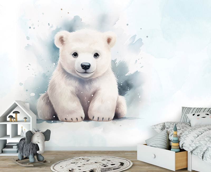 Creëer een winterwonderland in de babykamer of kinderkamer met ons Fotobehang Schattige Ijsbeer. Dit fotobehang toont een schattige ijsbeer in een serene, besneeuwde omgeving, perfect voor het toevoegen van een gevoel van kalmte en vreugde aan de ruimte van je kleintje.