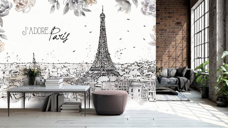 Creëer een romantische en klassieke sfeer met het fotobehang Schilderachtig Parijs. De verfijnde details van de Franse hoofdstad, van de iconische Eiffeltoren tot charmante straten, geven je interieur een tijdloze uitstraling.