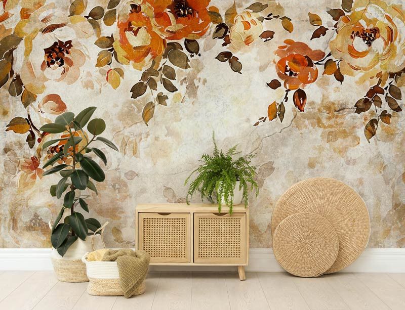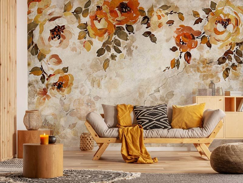 Combineer zachtheid en stoerheid met het fotobehang Schilderachtige Bloemen op Betonwand. De gedetailleerde bloemen tegen een industriële betonlook zorgen voor een opvallend contrast dat je interieur een modern en kunstzinnig karakter geeft.