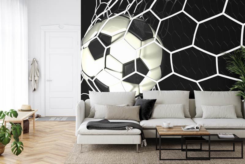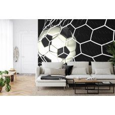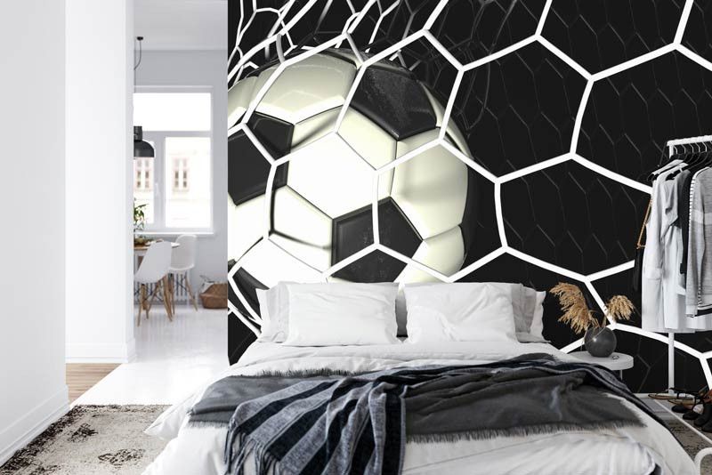 Vier het hoogtepunt van voetbaleuforie met ons voetbal fotobehang. Dit adembenemende ontwerp legt het krachtige moment vast waarop een voetbal strak in het net van het doel zit, tegen een diepzwarte achtergrond. De scherpe details en het contrast van de voetbal tegen de zwarte achtergrond creëren een visuele impact die de passie en intensiteit van het spel tot leven brengt.
