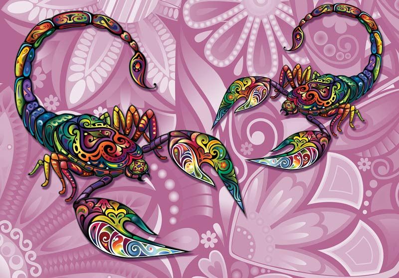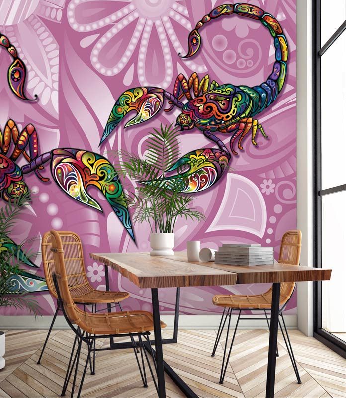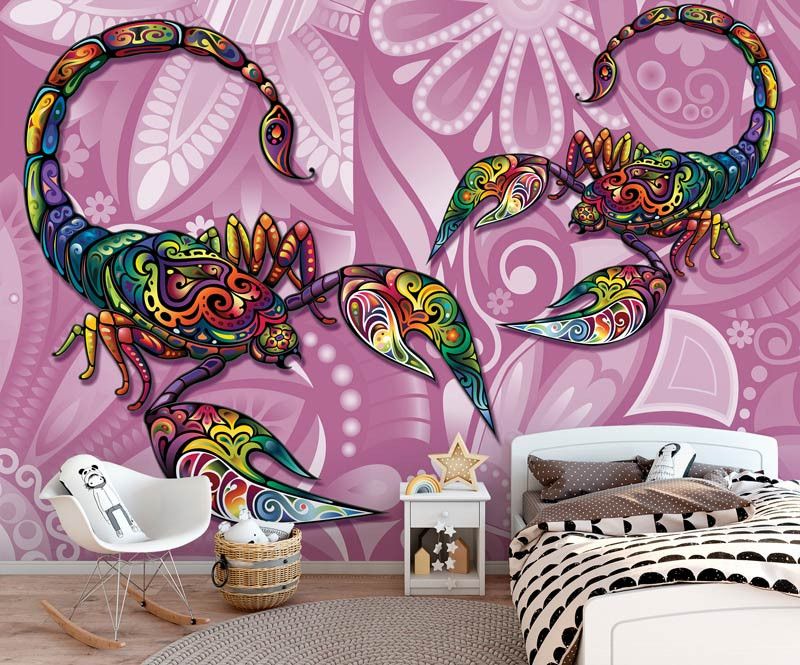 Vlies fotobehang van 2 geschilderde schorpioenen.