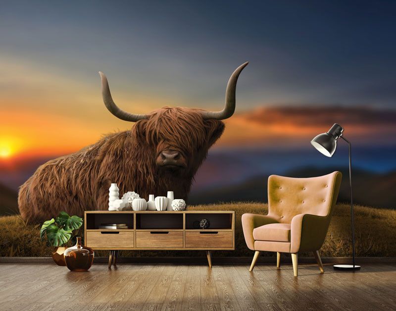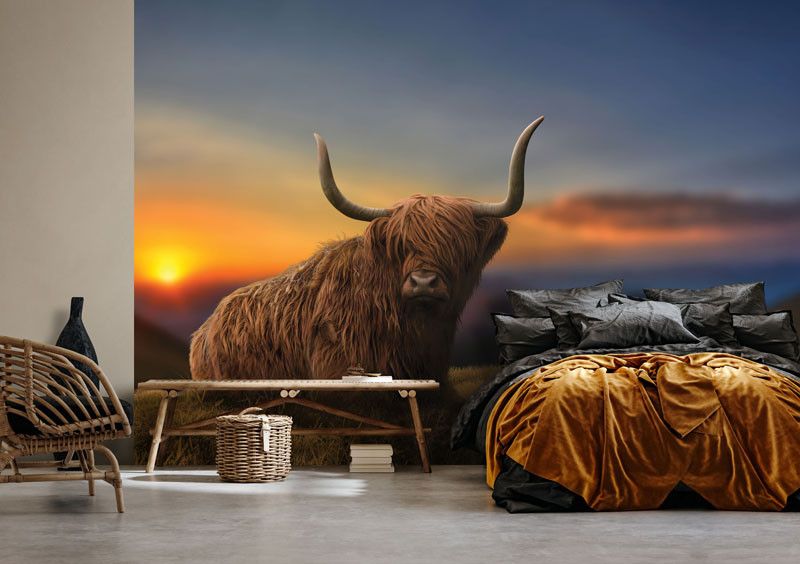 Dit fotobehang is eenvoudig op maat te bestellen door de gewenste afmetingen in te voeren en het perfecte deel van de afbeelding te selecteren. Dankzij de gedetailleerde weergave van de Schotse Hooglander en het indrukwekkende landschap komt dit ontwerp volledig tot zijn recht. Of je nu een warme sfeer wilt creëren in de woonkamer, slaapkamer of kantoor, dit fotobehang brengt de serene schoonheid van het Schotse landschap in elke kamer van je huis.