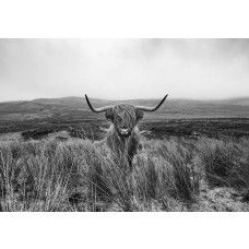 Fotobehang Schotse Hooglander in de Natuur zwart-wit