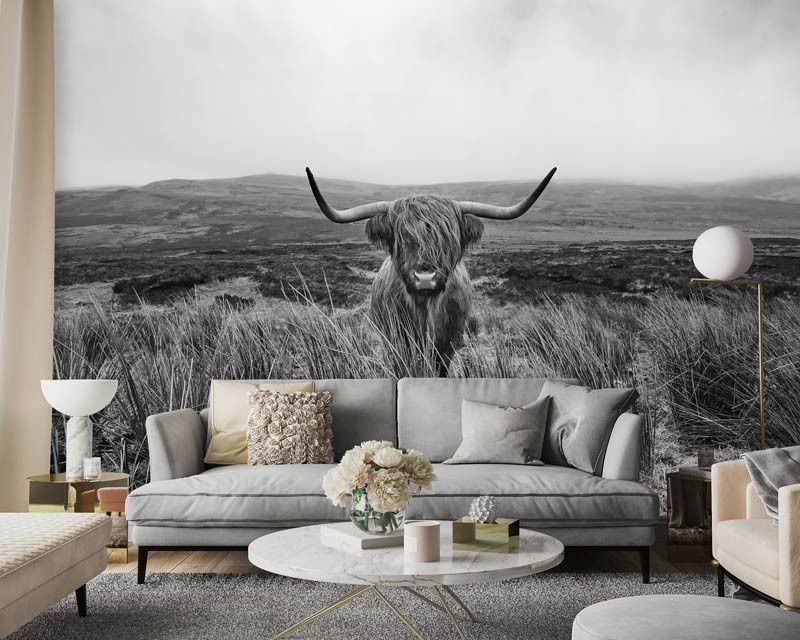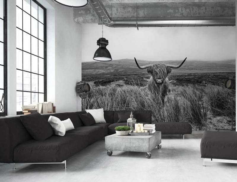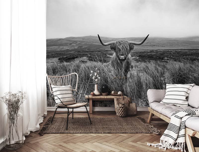 Het fotobehang van de Schotse hooglander is een echte eyecatcher en is de perfecte aanvulling op elke ruimte.