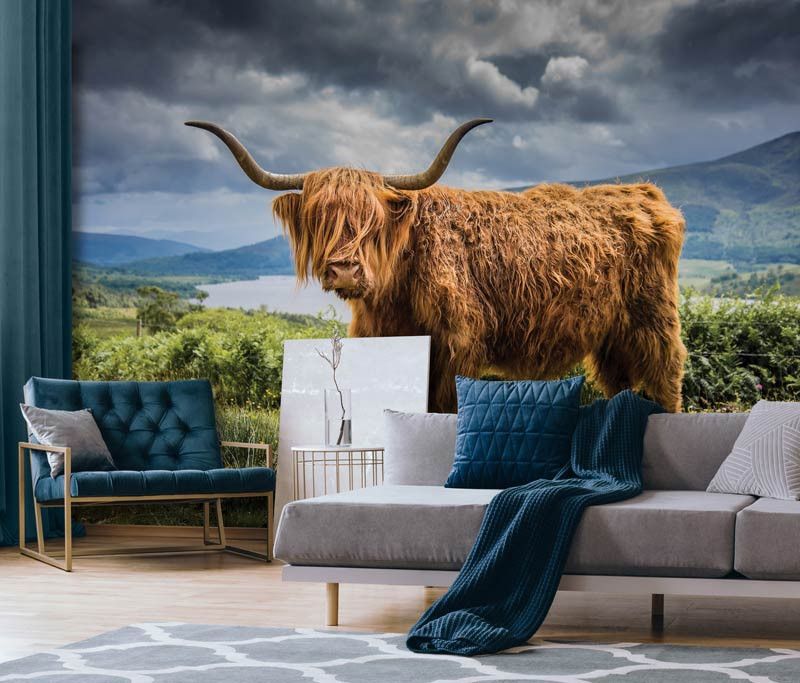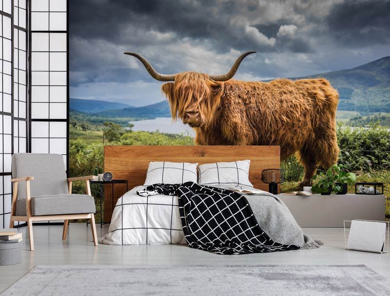 Geef je interieur een bijzondere uitstraling met dit unieke Schotse hooglander fotobehang.
