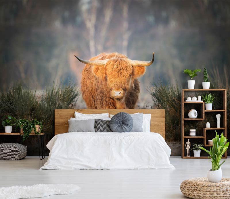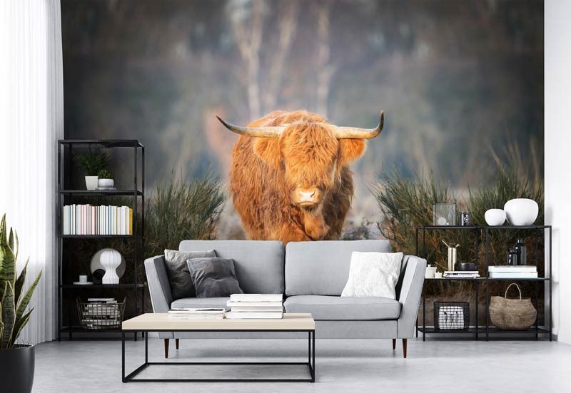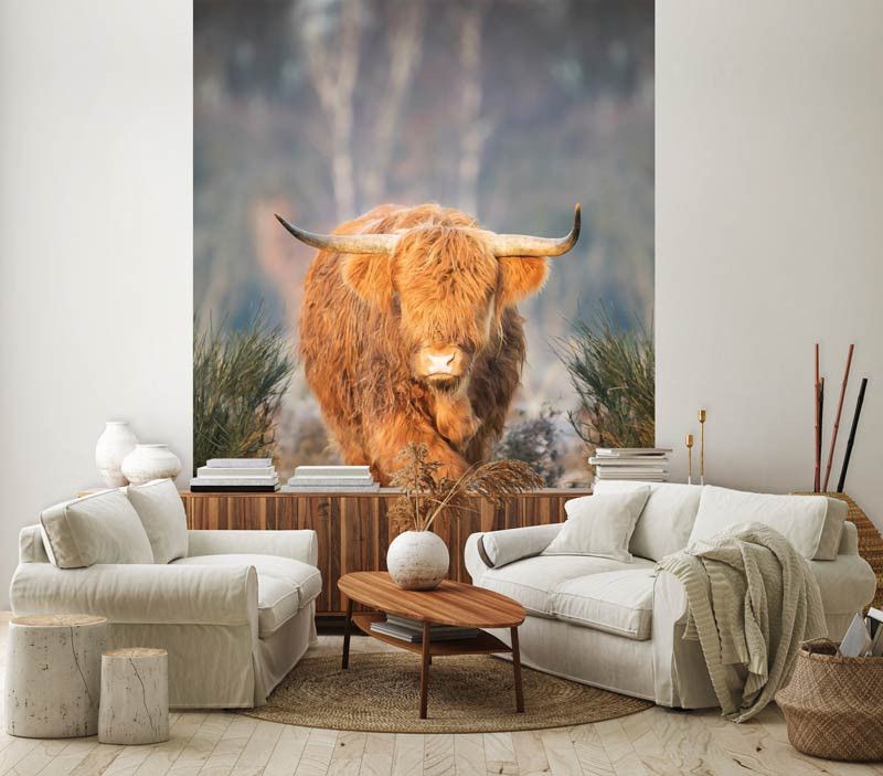 Het Schotse hooglander fotobehang geeft uw interieur een rustieke, buitenlucht-sfeer door de prachtige kleuren en het schilderachtige uitzicht. Als u uw ogen sluit, dan voelt u bijna het warme zonlicht en het zachte gras onder uw voeten.