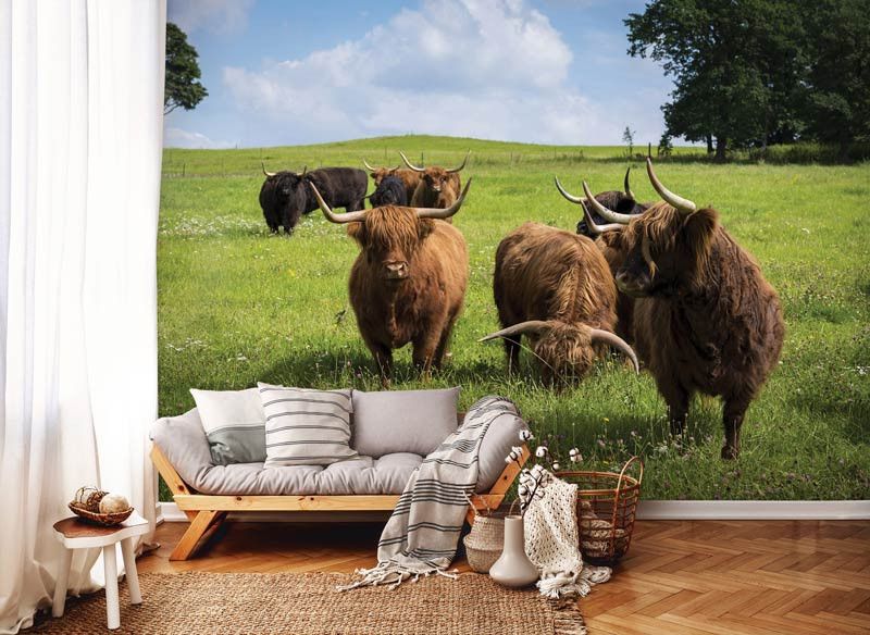 Het fotobehang van de Schotse Hooglanders is de perfecte aanvulling op iedere ruimte.