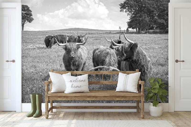 Het fotobehang van de Schotse Hooglanders is de perfecte aanvulling op iedere ruimte.
