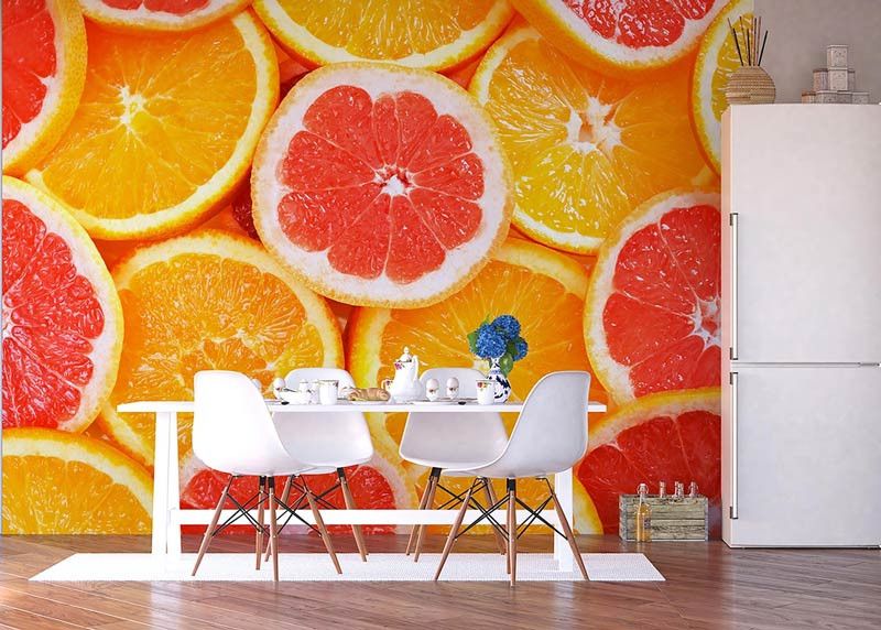 Dit fotobehang is eenvoudig op maat te bestellen en voegt een speelse, levendige touch toe aan elke ruimte.