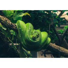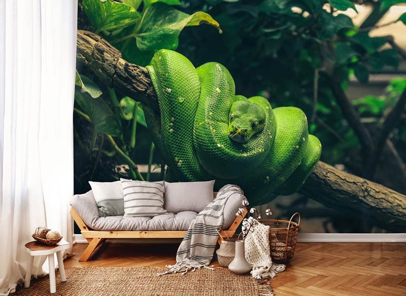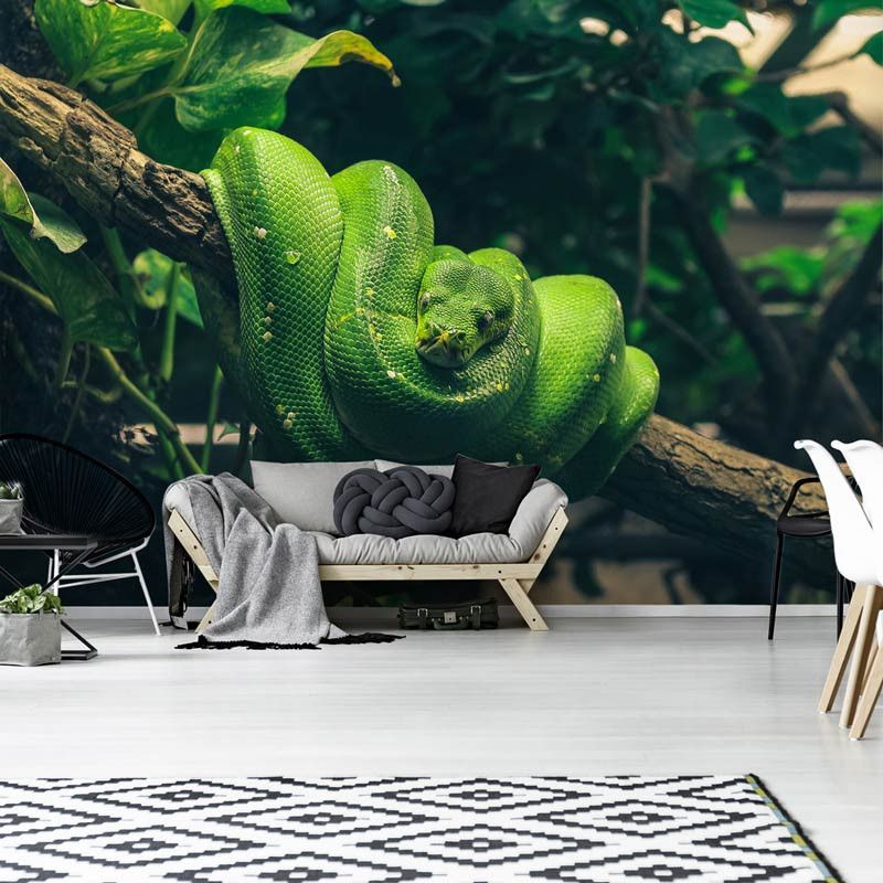 Het fotobehang van de groene slang is een echte eyecatcher en is de perfecte aanvulling op elke ruimte.